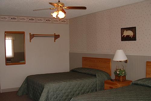 2 full size beds, 1 full bath, and a large kitchen. To accommodate more guests, add a motel room that will adjoins your kitchen!