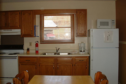2 full size beds, 1 full bath, and a large kitchen. To accommodate more guests, add a motel room that will adjoins your kitchen!